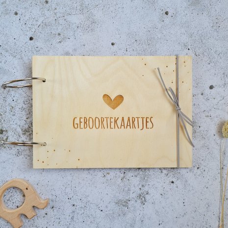 Houten bewaarbundel | Geboortekaartjes | Hartje | A5