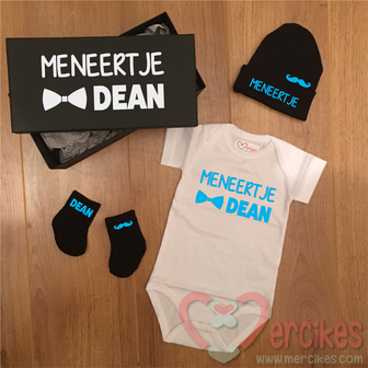 ♦ Luxe zwarte doos met de tekst : "Meneertje met Naam"