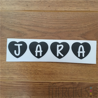 Het zijn gesneden naamstickers en bestaan dus uit allemaal losse letters en onderdelen die met behulp van de overdrachtstape in één keer op de desbetreffende ondergrond aangebracht kunnen worden. Het is dus geen sticker met een transparante of gekleurde achtergrond!
