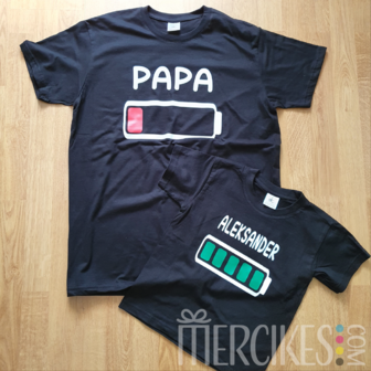 Batterijlevel shirts met naam Batterijlevel shirts met naam set shirts met grappige opdruk van batterij, vader zoon shirts grappig cadeau voor de toekomstige vader, batterijlevel cadeau papa zoon orgineel, kado vaderdag orgineel Batterijlevel shirts met naam