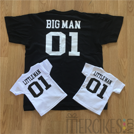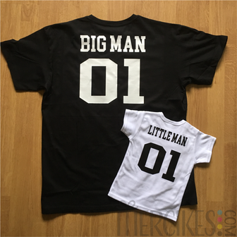 Een matching set voor vader en kind, Big Man Little Man met Rugnummer naar keuze.