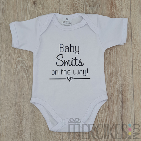 Mooie romper met de tekst "Hoera! 'n baby" met een baby gezichtje