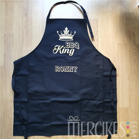 kokschort met naam BBQ King met naam keukenschort bbq king met kroon met naam Keukenschort BBQ King met Naam