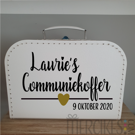 Naam communiekoffer met datum - hartje
