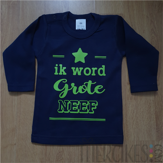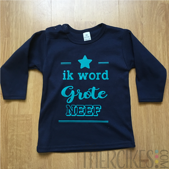 Ideale manier om je neefje de geboorte van jullie nieuwe baby aan te kondigen. Na het lezen van het shirt stoer ik word grote neef, zal het iedereen duidelijk zijn. Leuk manier om hem bij de zwangerschap te betrekken.