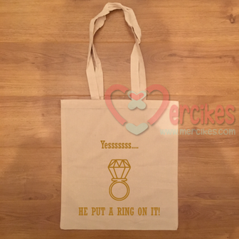 Grappige tas met he put a ring on it! Leuk idee om hiermee de verloving aan te kondigen