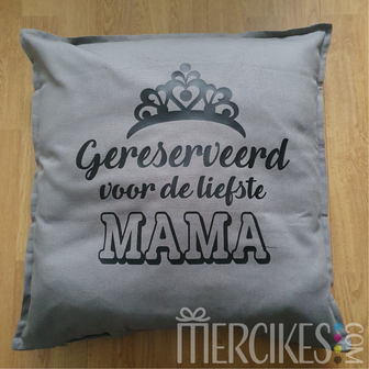 Kussenhoes met tekst ' Gereserveerd voor de liefste Mama "