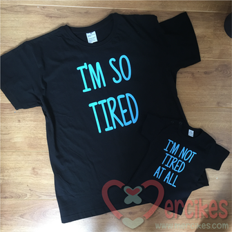 Set Ouder / Kind - I'm So Tired, I'm not tired at all papa kind t-shirts, i'm so tired, i'm not tired at all Set Ouder / Kind - I'm So Tired, I'm not tired at all