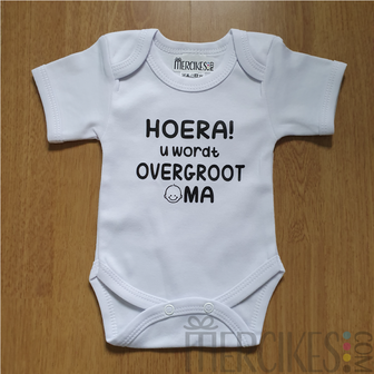 Geboorteaankondiging door middel van een bedrukte romper "U wordt Overgrootoma"