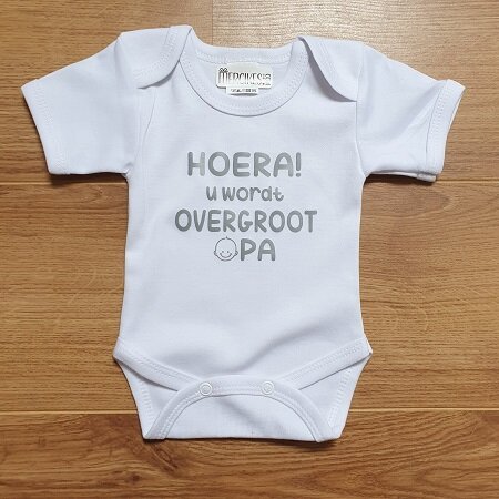 Geboorteaankondiging door middel van een bedrukte romper "U wordt Overgrootopa"